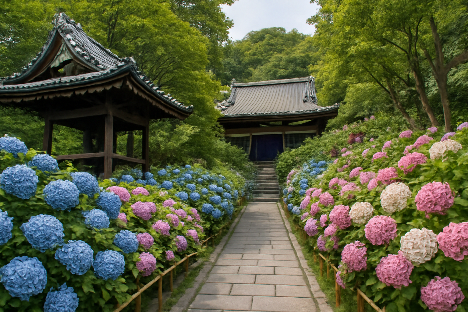 長谷寺は、鎌倉市内でも最も有名な紫陽花スポットで、毎年多くの観光客が訪れます。境内に広がる紫陽花の花々は、見事に色づき、特に梅雨時期に訪れると、その美しさを余すことなく楽しむことができます。