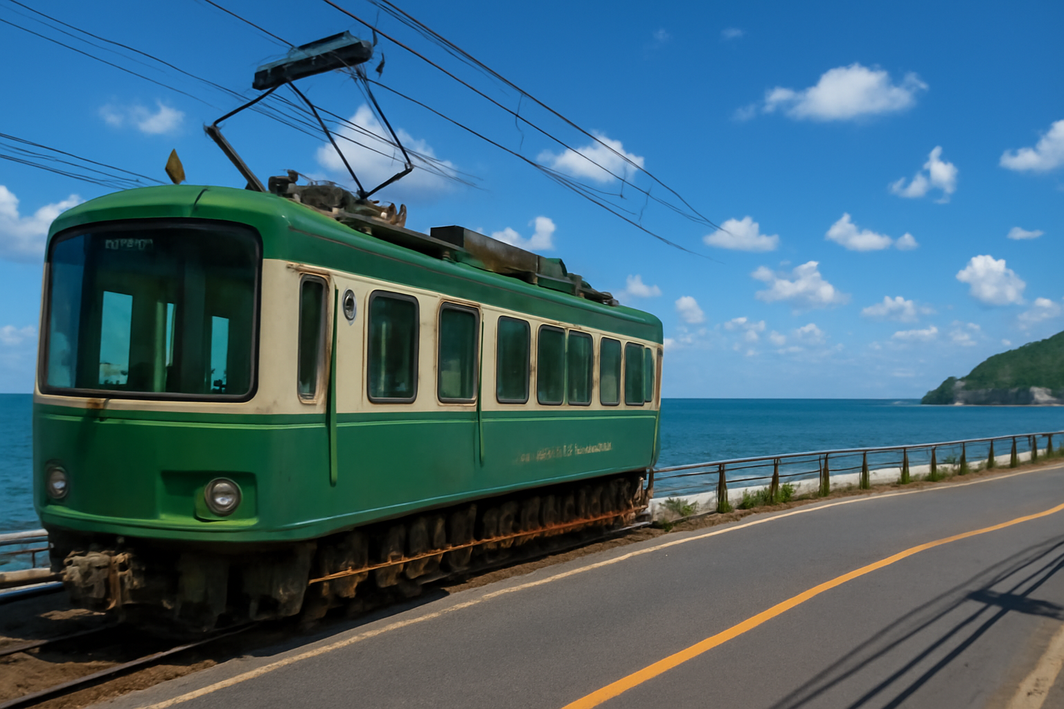 江ノ電:鎌倉駅から江ノ島方面へ向かう江ノ電は、海沿いの絶景を楽しみながら移動できる人気の路線です。