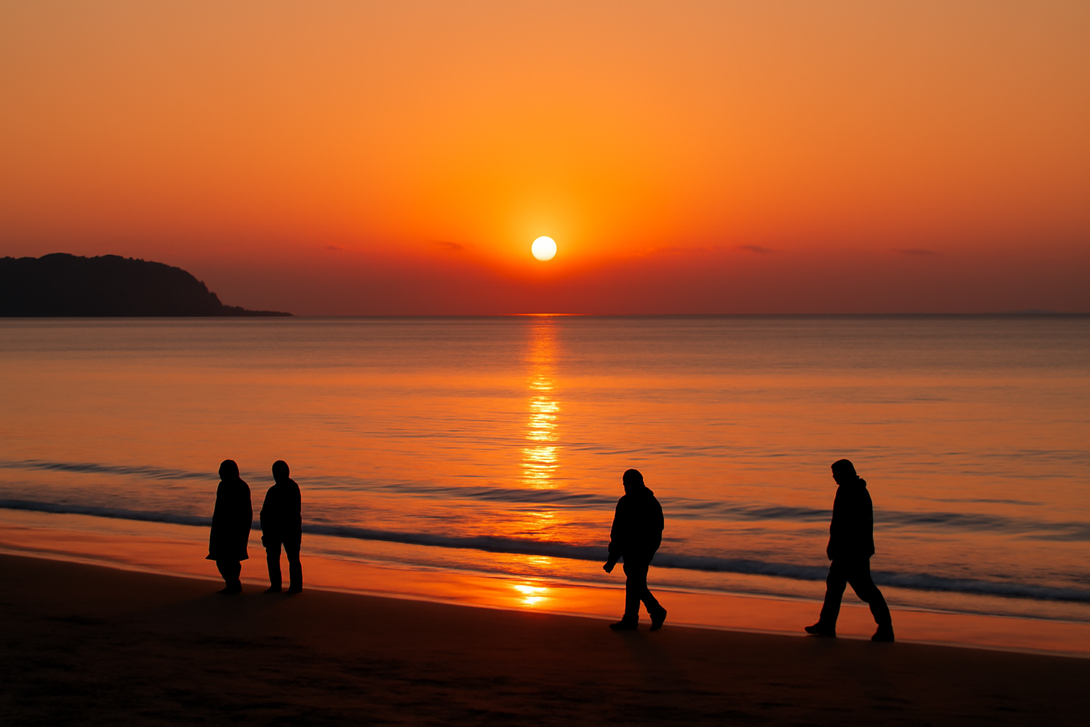 北条海岸や那古海岸は、その朝焼けを楽しむのにぴったりなスポット。駅から徒歩圏内という立地の良さもあり、朝の散歩にも最適です。ベンチに腰掛けて温かい飲み物を飲みながら、少しずつ目覚める空を見ていると、時間の流れがゆるやかに感じられます。